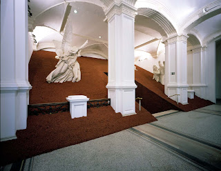 Reage ao espaço de exposição com uma atenção às formas específicas da arquitetura, descobre formas escondidas, modificando a forma do espaço com os materiais com que é construído.